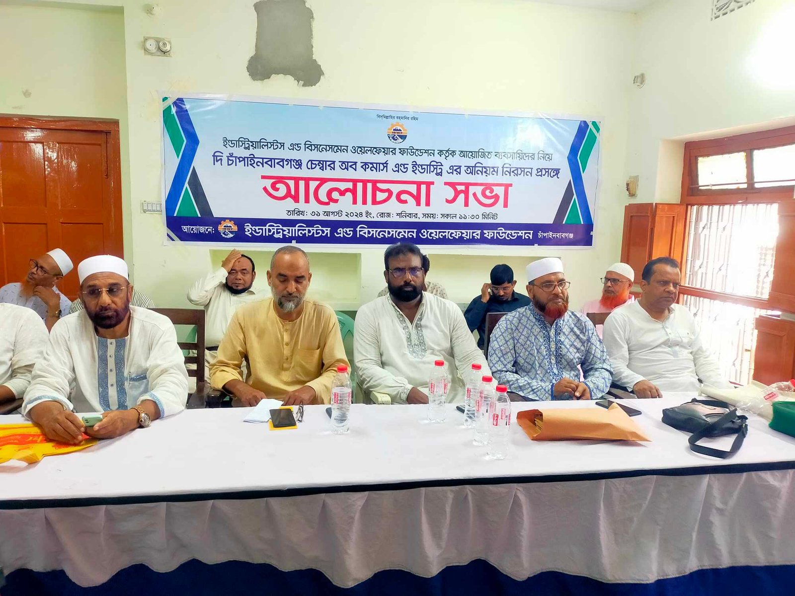 চাঁপাইনবাবগঞ্জ চেম্বার অব কমার্স অ্যান্ড ইন্ডাস্ট্রিজের সভাপতির বিরুদ্ধে অনিয়ম নিরসনে আলোচনা সভা করেছে ব্যবসায়ীদের একাংশ।